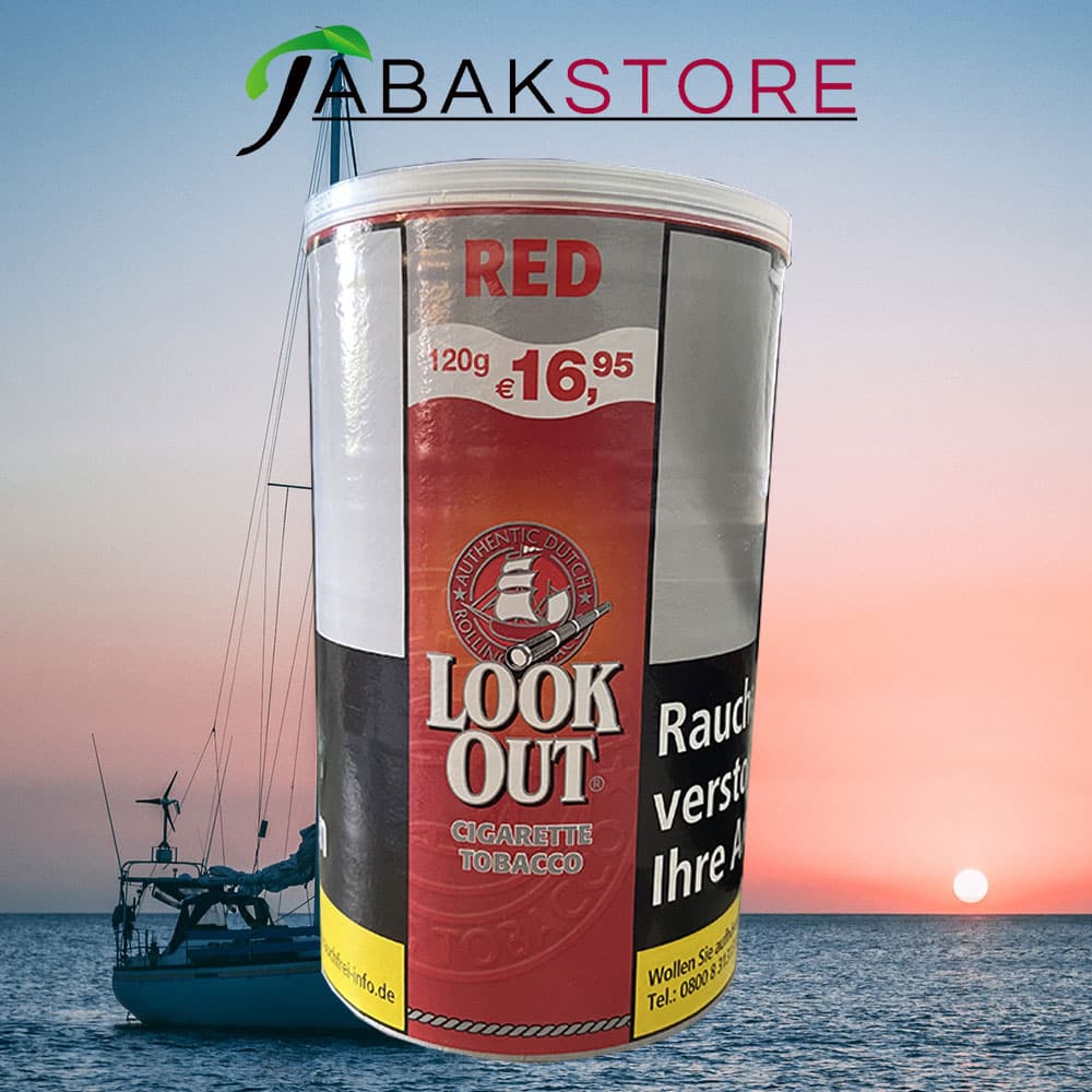 Schon seit langer Zeit können Sie die beliebte rote Variante des Zigarettentabaks der Marke Look Out (in der praktischen 120g Dose) auch bei uns im Onlineshop von Tabakstore.de kaufen. Hierbei handelt es sich um eine kräftige Tabak-Mischung nach typisch American Blend-Art – die eine ebenso intensive wie süßlich-würzige Komponente offenbart. Der Look Out Red Zigarettentabak ist generell gesprochen genau der richtige Tabak für alle, die auf American Blends setzen – aber dennoch das besondere suchen.